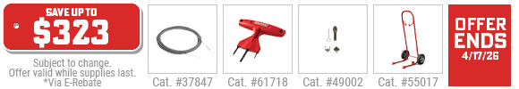 RIDGID E-REBATE - Free Cable & Decoupler or Cart & Tool Kit w/ K-3800 Drum Machine Kit